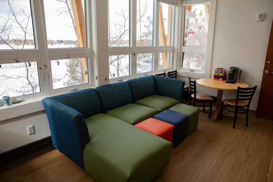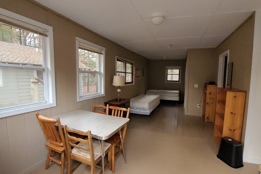 - Dow House Room w/ Kitchenette (Options 5 & 6): Tailored for those who prefer added culinary flexibility, these rooms offer a woods or lake view, two twin beds, a private bath, a convenient kitchenette, and air conditioning.