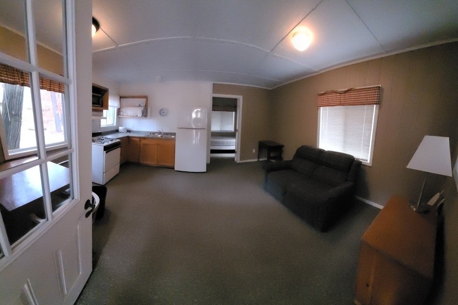 - Cabin w/ Full Kitchen (Option 9): Embrace a homey atmosphere with a woods view, a combination of double and twin beds with a private bath, and a full kitchen for added convenience.