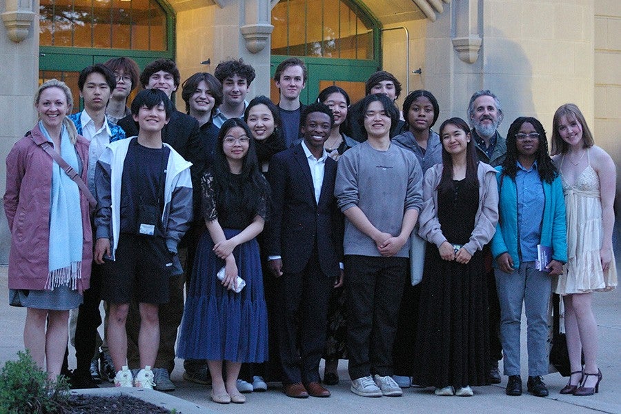 In spring 2023, Academy piano students were “back on the road again” with a trip to Kalamazoo, Michigan. Unlike the programs Gordon supported 30 years ago, this tour required neither visas nor passports. Just a few hours’ drive south of Interlochen, students connected with education staff of the prestigious Gilmore Piano Festival; learned from a festival piano technician; and traded notes (literally!) with a recent Gilmore Young Artist Award-winner, a rising piano star similar in age and artistic background to Interlochen piano students. The students also performed at a local senior-living facility, bringing a dose of Interlochen artistry to an atypical venue.