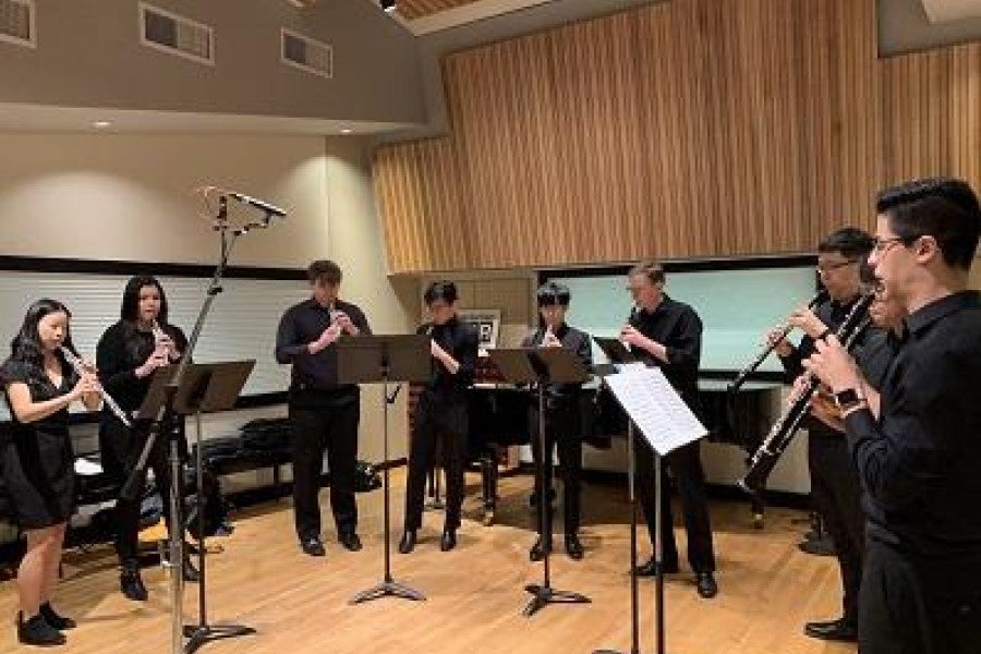 Our state-of-the-art 60,000 square-foot music facility has two 3,500 square-foot rehearsal halls, two recording studios which allow for rehearsal and performance recordings in multiple venues on campus with multiple ensemble and practice rooms, and individual faculty teaching studios. Learn more about The Music Center.