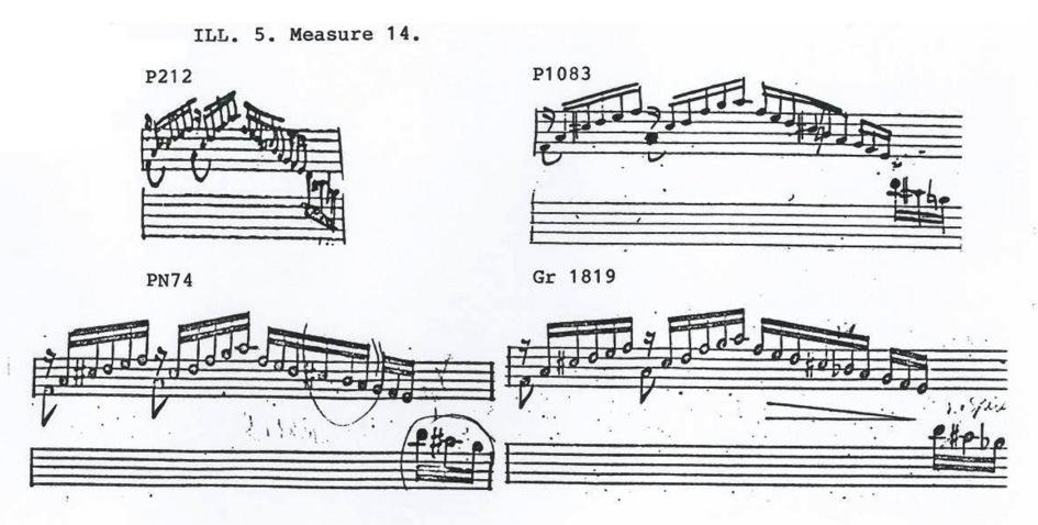 Ill. 37. Measures 158-159. P651, P421, P803, Amb548, P320, PN74, Gr 1819.