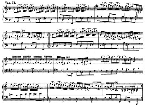 Well, now, this Aria and Ten Variations [BWV 989] is very seldom played; it is beginning to be played a little bit more now; it's very seldom played, because it is filled ... oh, the Aria is filled with ornamental symbols. Now, if you are illiterate as far as reading the ornamental symbols, you can't handle this music at all and the fact is, the truth is, that most performers are totally illiterate in this field. Now, the Variations, on the whole, have hardly any ornamental symbols at all and that makes it just as difficult for the opposite reason. The art ... performers don't know what to do with them. On the one hand, you have too many ornamental symbols that can't be read; on the other hand, you have something so simple that it seems it's not a very good piece of music; it's very dull; and one can't do anything with it; so it's never played.