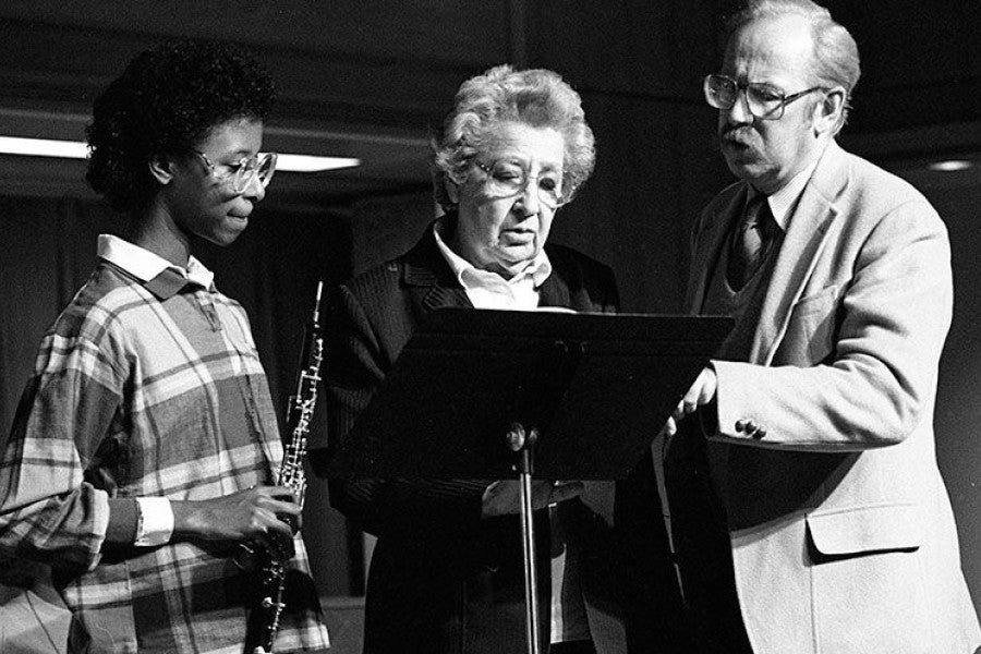 Dan Stolper, Lady Evelyn Barbirolli, and a student