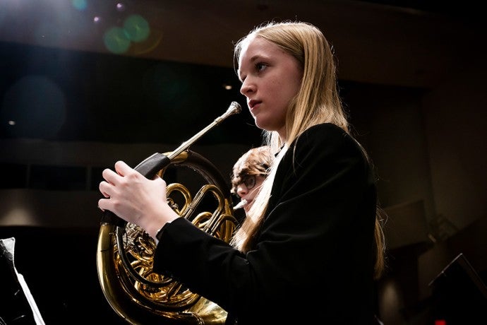 2024 National Youth Orchestra selectee Sydney Richardson rehearses with the Arts Academy Wind Symphony.