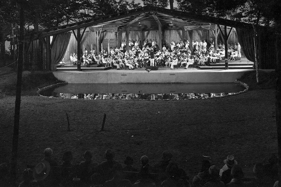 Concerts soon joined the natural splendor and recreational activities that made Interlochen, Michigan a summer destination. Many guests were unaware of Maddy’s camp and only learned of it by following the sounds of music billowing through the virgin pines of Interlochen State Park to its source across the street.